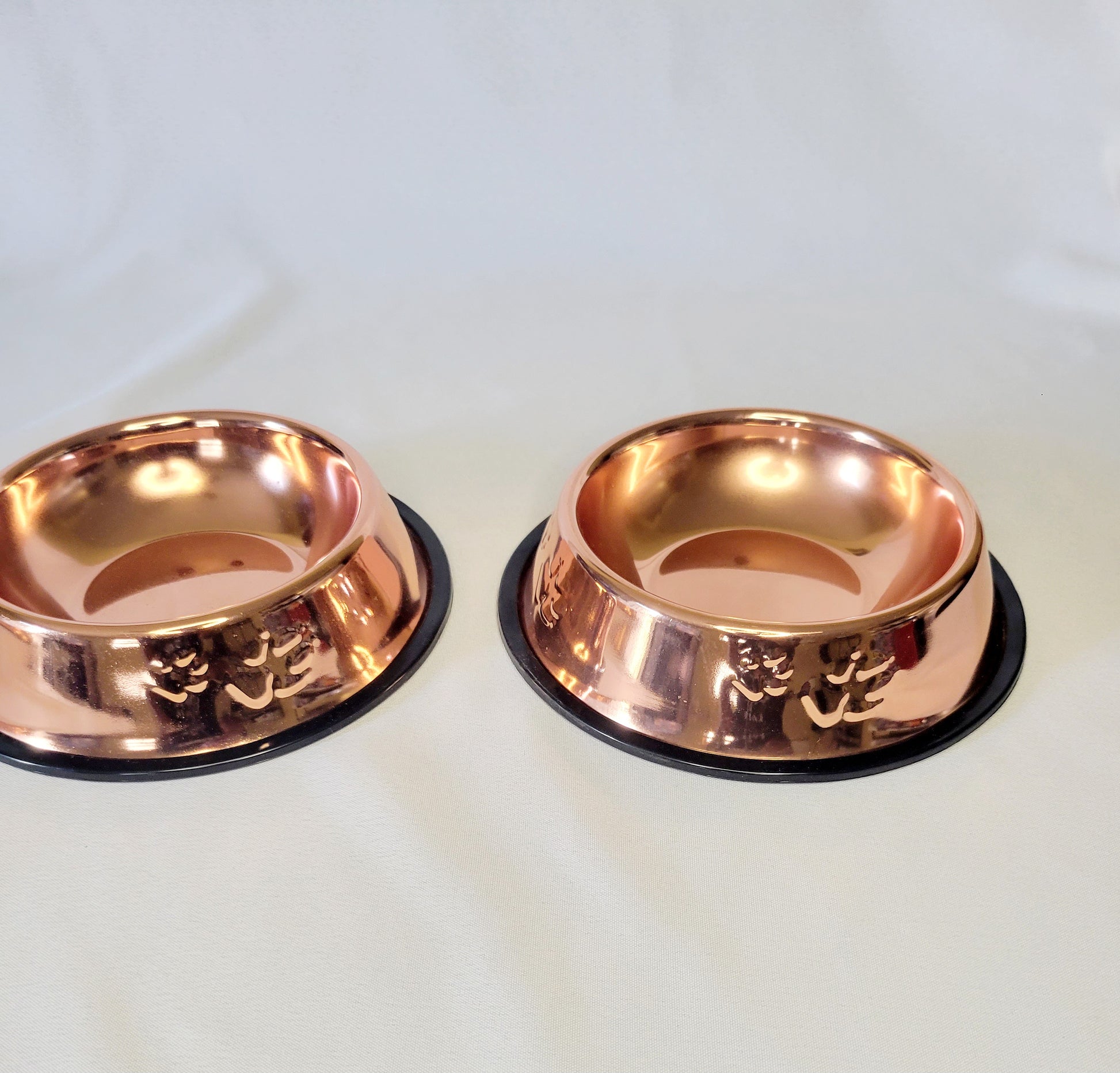Rose gold dog bowls are available in various sizes to suit different breeds and sizes of dogs. Models come with non-slip rubber bases to prevent the bowl from sliding or tipping over while your dog is eating or drinking.