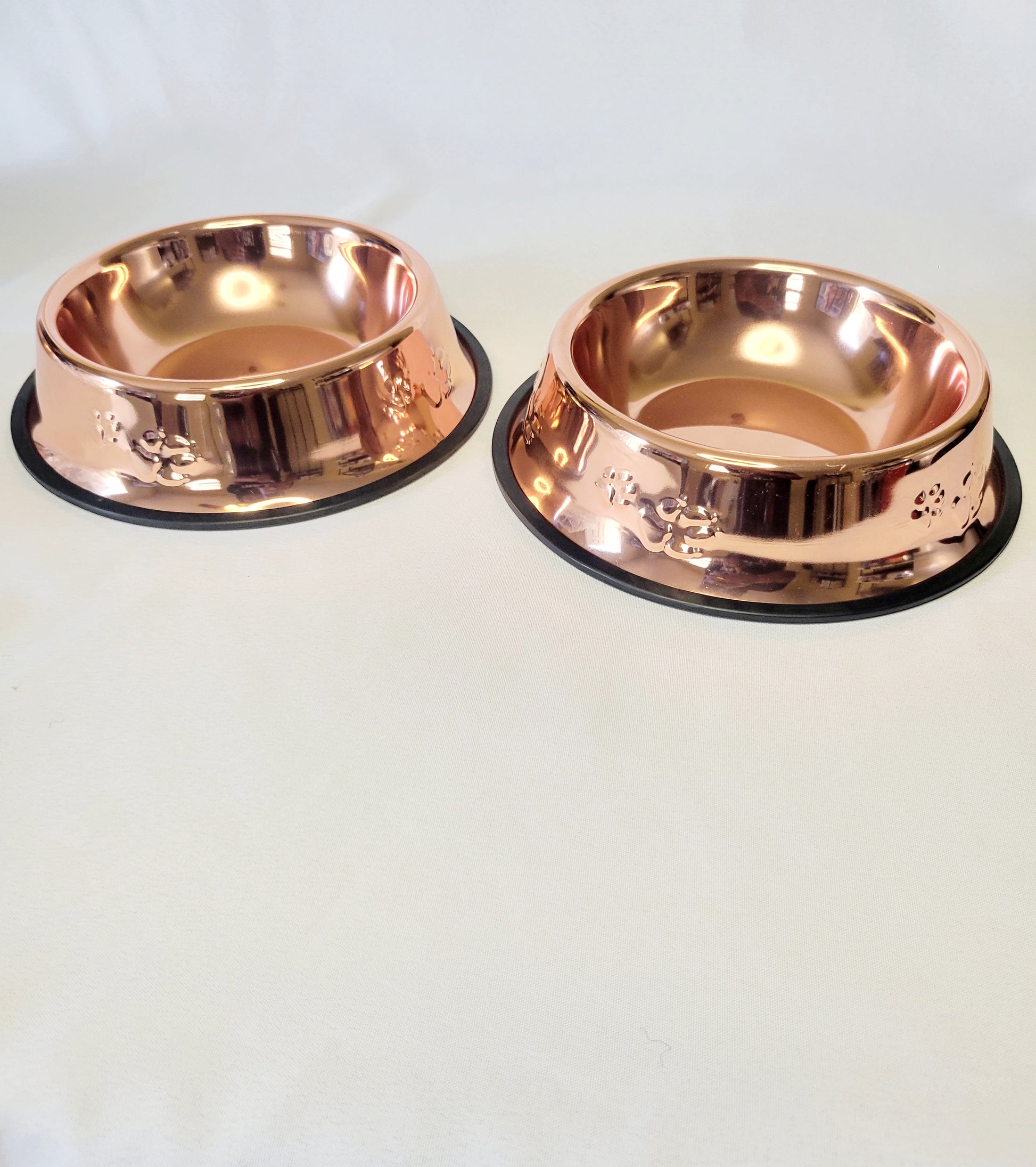 Rose gold dog bowls are available in various sizes to suit different breeds and sizes of dogs. Models come with non-slip rubber bases to prevent the bowl from sliding or tipping over while your dog is eating or drinking.